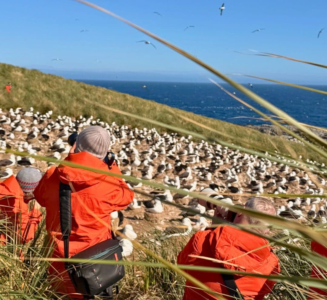 Steeple Jason, in the Falklands, was our first landing. Picture this: the largest colony of black-browed albatross in the world. Ten thousand of them, together with gentoo, rockhopper, and Magellanic penguins, all congregating here. It's a full-blown avian metropolis.